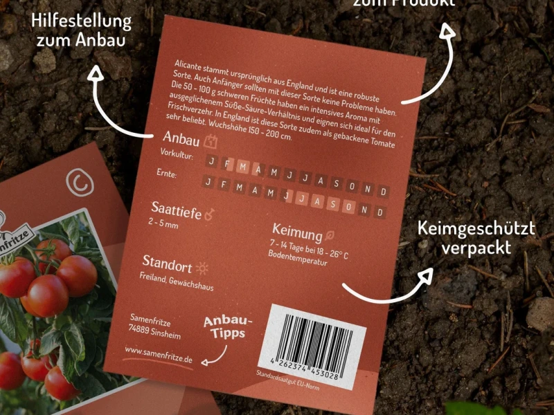 Alicante stammt ursprünglich aus England und ist eine sehr robuste Sorte. Auch Anfänger sollten mit dieser Sorte keine Probleme haben. Die 50 - 100 g schweren Früchte haben ein intensives Aroma mit ausgeglichenem Süße-Säure-Verhältnis und eignen sich ideal für den Frischverzehr. In England ist diese Sorte zudem als gebackene Tomate sehr beliebt. Die Alicante-Tomaten haben einen süßen und fruchtigen Geschmack, der sowohl roh als auch gekocht gut zur Geltung kommt.