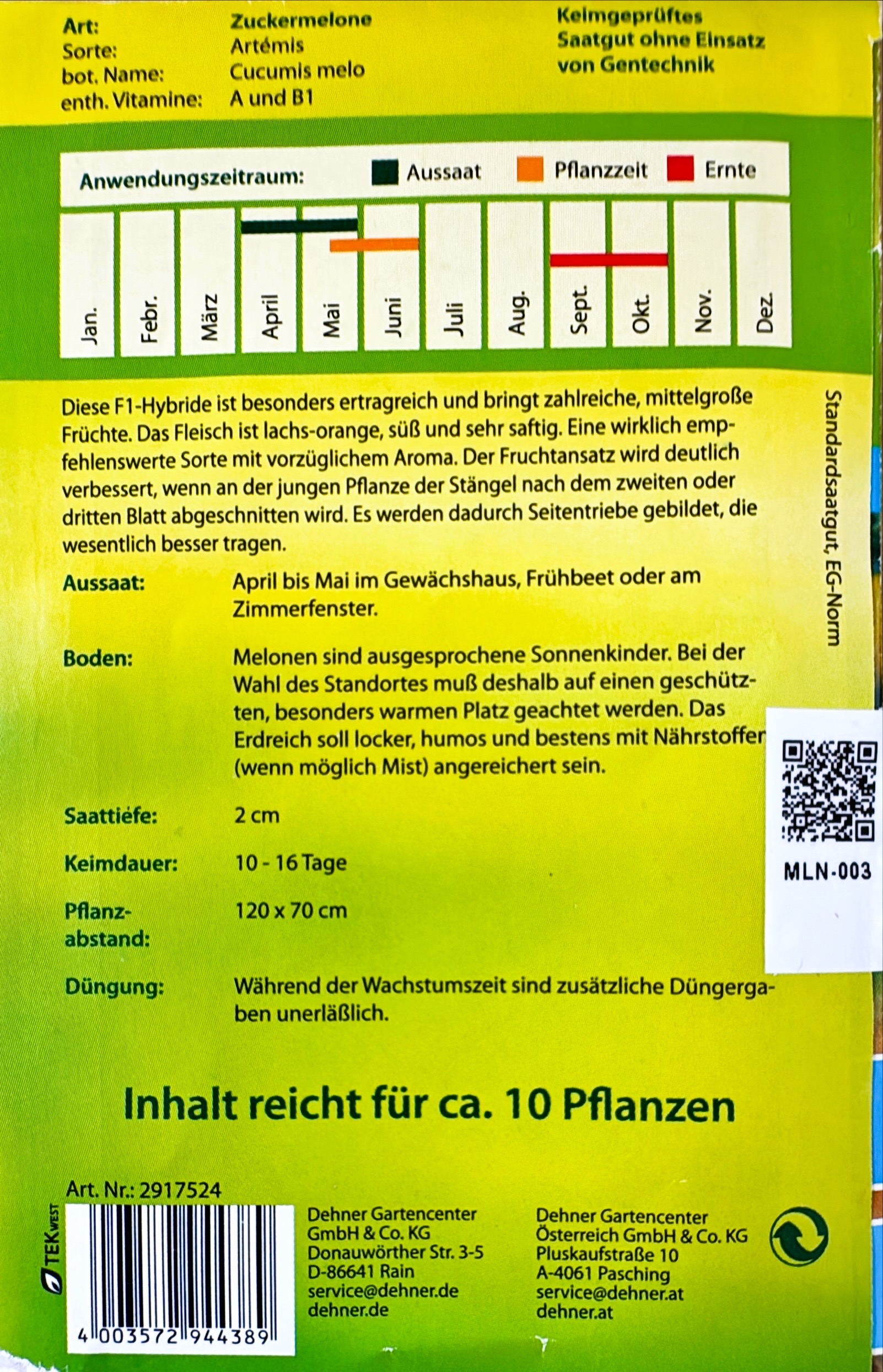 Artemis ist eine professionelle Charentais-Melone und sehr widerstandsfähig gegen Krankheiten. Artemis gibt gesunde, kräftige Pflanzen mit vielen Blättern. Diese Blätter geben der Frucht mehr Schatten, was zu einer besseren Reifung führt. Die Frucht hat einen sehr hohen Brix Gehalt , d.h. süßere Früchte und eine längere Haltbarkeit. Fruchtgewicht ca. 1,1 kg. Vorzugsweise in Gewächshäusern anbauen und eventuell bei der Bestäubung helfen.